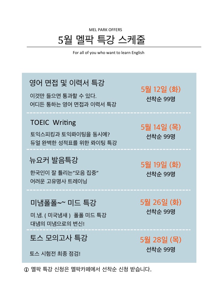 5월 멜팍어학원 특강 안내 드립니다.