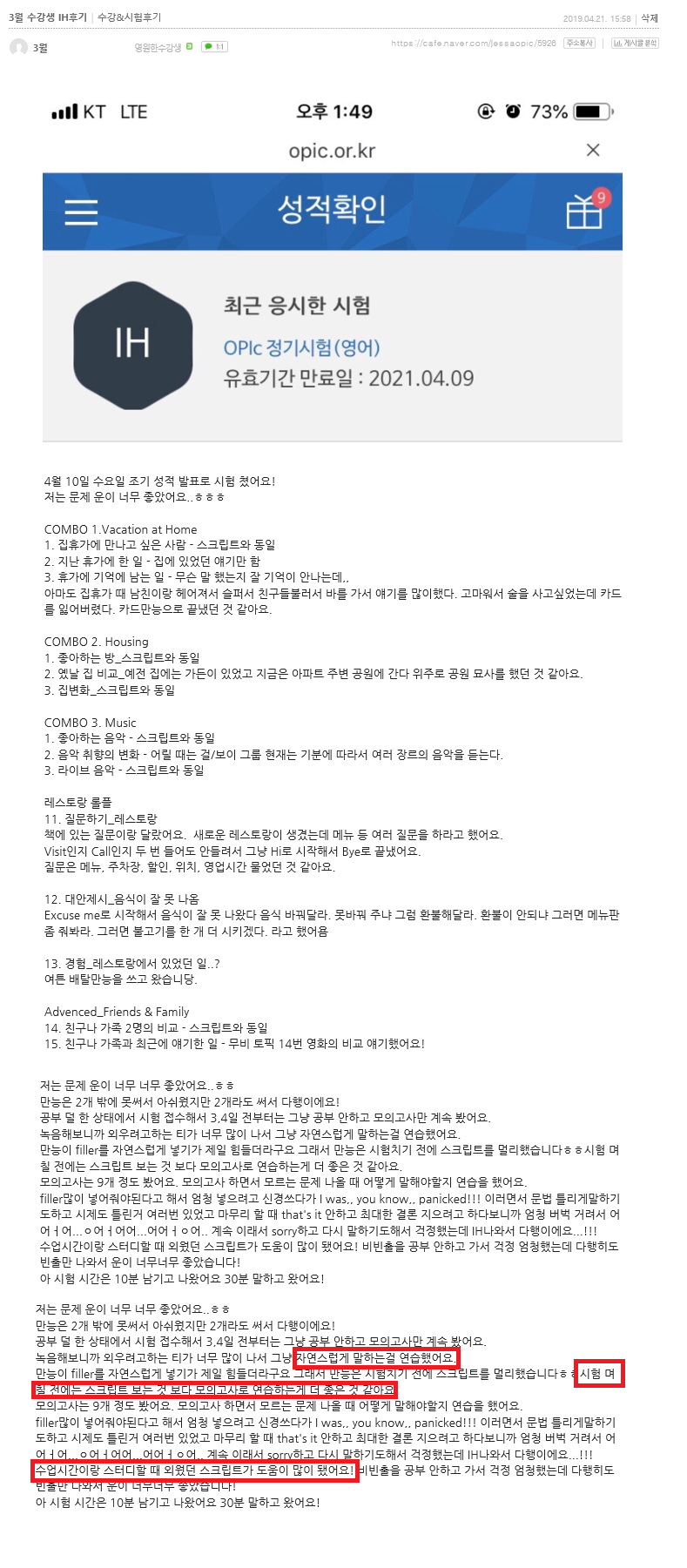 오픽 | (대구오픽 IH후기) 수업시간이랑 스터디할 때 외웠던 스크립트가 도움이 많이 됐어요!