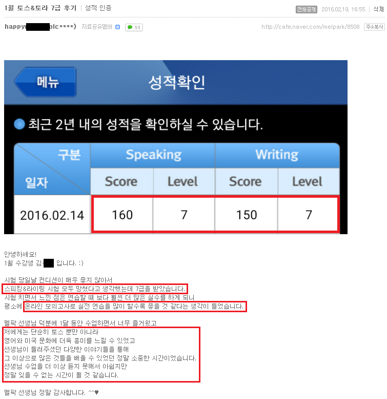 토스 | (대구토스 7급후기) 감동후기)단순히 토스 그 이상의 수업이었습니다. 페이지 정보 작성자 MELPARK 작성일16-02-23 09:22 조회4,212회 댓글0건 이전글 다음글 검색 목록 본문 (클릭 하시면 크게 보실 수 있습니다.) 수강생 후기 입니다. 더 많은 후기는 우측 카페 링크 가입 후 보실 수 있습니다. 이전글 다음글 검색 목록