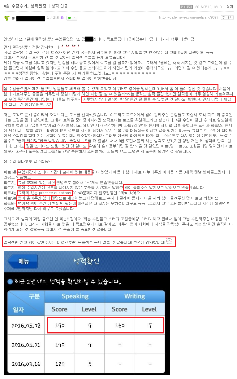 토스 | (대구토스 7급후기) 목표등급 7급을 받아서 너무 기뻐요~~ 페이지 정보 작성자 MELPARK 작성일16-05-25 10:09 조회4,338회 댓글0건 이전글 다음글 검색 목록 본문 (클릭 하시면 크게 보실 수 있습니다.) 수강생 후기 입니다. 더 많은 후기는 우측 카페 링크 가입 후 보실 수 있습니다. 이전글 다음글 검색 목록
