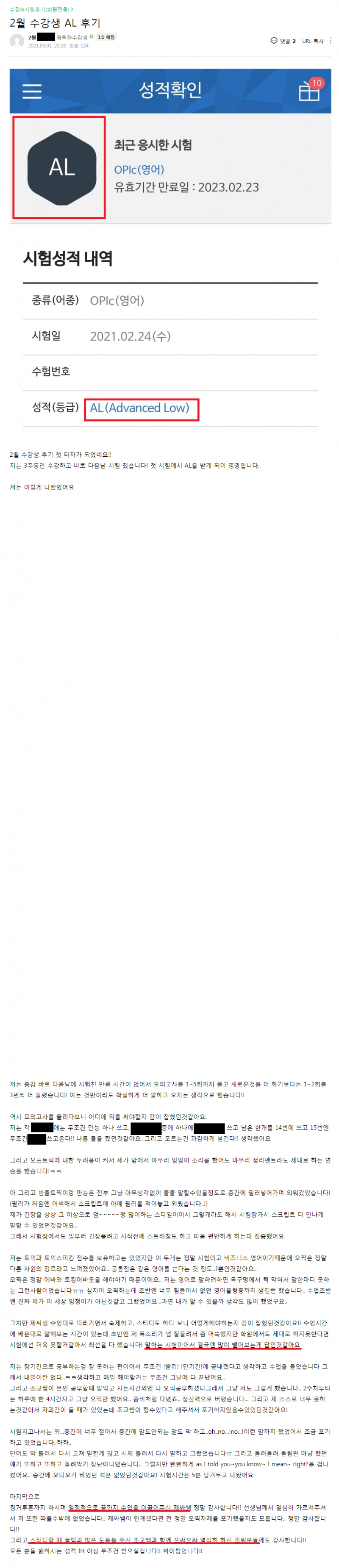 오픽 | (대구오픽 AL후기) 열정적인 선생님과 조원들과 함께라면 AL은 보장 !! 페이지 정보 작성자 MELPARK 작성일21-03-05 14:44 조회11,387회 댓글0건 이전글 다음글 목록 본문 #멜팍어학원 #제싸오픽 #대구오픽 #대구오픽학원 이전글 다음글 목록